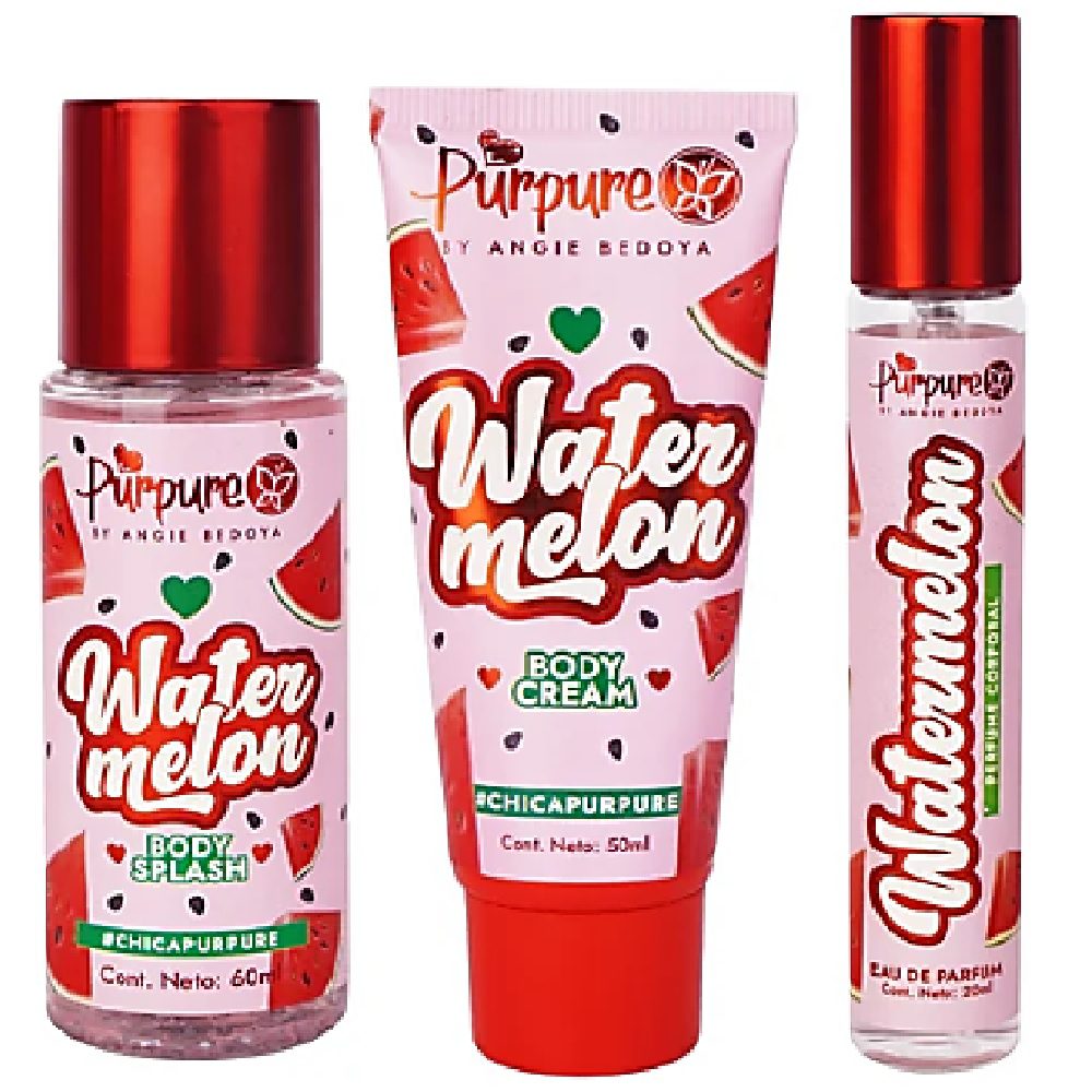El Kit Corporal Watermelon Purpure incluye 1 splash body, 1 crema corporal y 1 perfume corporal con una fragancia de perfil dulce y fresco. Es ideal para complementar la rutina diaria, dejando la piel con sensacion suave y un aroma agradable. Puedes usar los tres productos en capas para intensificar la percepcion de la fragancia. NSOC38831-25CO