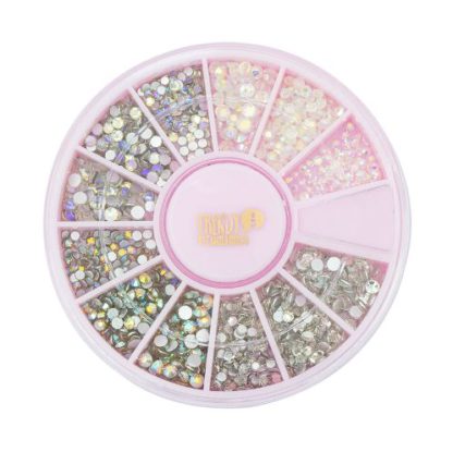 Descripción: Kit de piedritas decorativas tipo rhinestones con acabado cristal para realzar maquillajes y nail art. Ideal para looks de fiesta, editoriales o festivales.